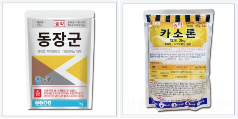 1) 상표명 : 포도대장, 명장, 깔끄미, 말끄미, 풀사리, 살초왕, 만석군, 마무리, 골드론/ 황금들, 만수레/논두렁, 만수레, 장손, 두배논/직파매, 옥토, 논풍, 올방피, 만드리