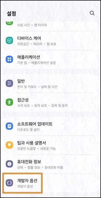 그리고 나서 다시 설정 메뉴로 돌아가보면 하단에 “개발자 옵션” 이라는 메뉴가 생성된것이 보입니다