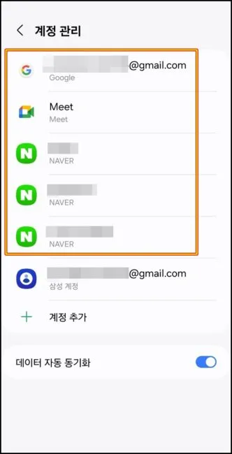 삼성계정을 제외한 모든 계정을 삭제해 줍니다.