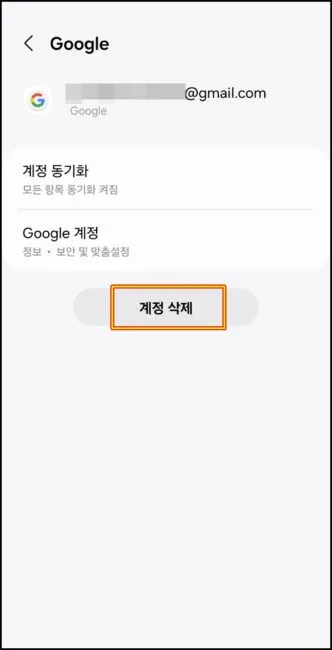 계정 및 백업 메뉴에서 “계정 관리” 메뉴로 들어가주세요.